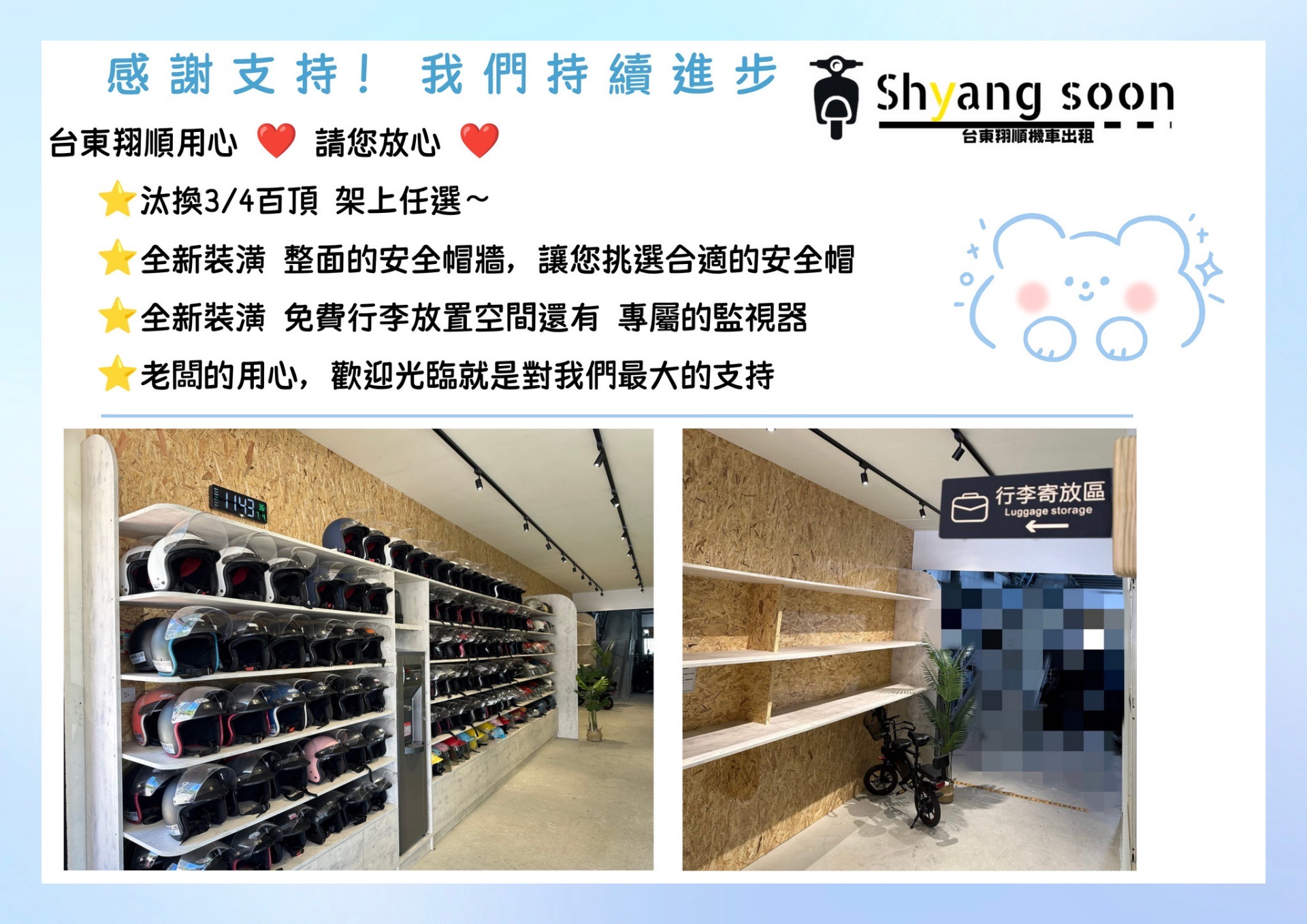 我們希望所有旅客🛵開心出遊平安回家🏠,大家騎乘機車時應多注意路況要有⛔防衛性駕駛觀念⛔喔,最重要的是來到台東幅員廣大的縣市,承租機車最重要的是找到一家合法店家,可提供的區域救援、人員的素質,以及店家對於機車的自主保養是否確實,這些都攸關於整趟旅途的完整性,我們希望每一位來台東預約機車旅客們,能有【期待的心 】來台東旅行,和【騎的放心 】翔順機車自主保養用心顧車,這趟旅行美好【回憶開心 】,歡迎您搭火車來台東租機車遊山玩水享受一趟自然山海的交響曲吧!