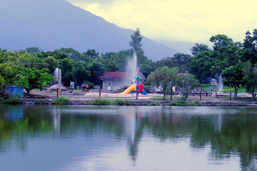 一進入園區入口,可以看見標誌性的遊客服務中心以及以蘭嶼獨木舟為設計概念的吊橋,經過獨木舟吊橋便可抵達戲水區。湖邊遍植草地也為棲息在湖中的各種野鳥提供了隱密的庇護,是欣賞豐富生態與鳥類的絕佳地點。在安全的人工戲水河道、噴泉廣場與戲水區中,讓遊客能大打水仗,或在廣場噴泉間來回穿梭,充分享受戲水的樂趣,成為親子假日出遊踏青的好去處。
