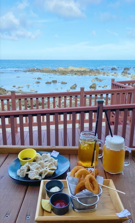 ⭐⭐⭐⭐⭐逐浪,這個店名取得真是好,在這裡可以欣賞壯闊太平洋海景,浪潮一波波往岸邊而來,藍天白雲大海真的是美。 冬天的風真的是冷,只能躲在室內欣賞風景,逐浪的風景美麗,餐點也不含糊,不管是鬆餅或者是特調飲料都不錯,新鮮水果茶用柳橙汁做底,味道濃郁香氣十足,醃洛神花也好吃,值得推薦。