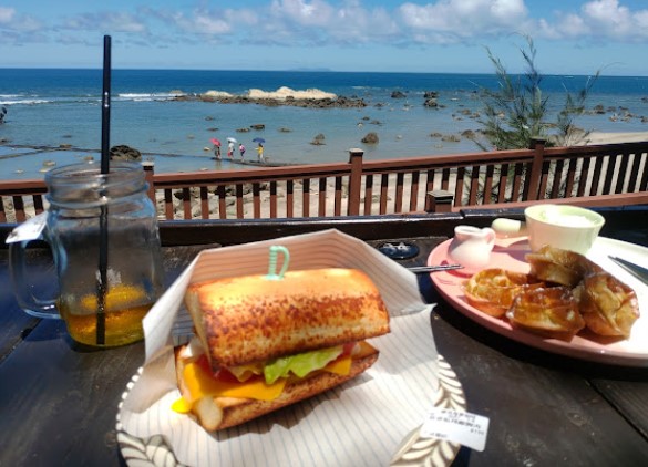 ⭐⭐⭐⭐⭐景色應該是緊鄰這幾家中最棒的,餐點一般般、不好不壞,室內很舒服,但因為我們是假日來訪,只能在懊熱的室外喝冰沙、吹電扇觀看漂亮的風景,遠方綠島清晰可見。