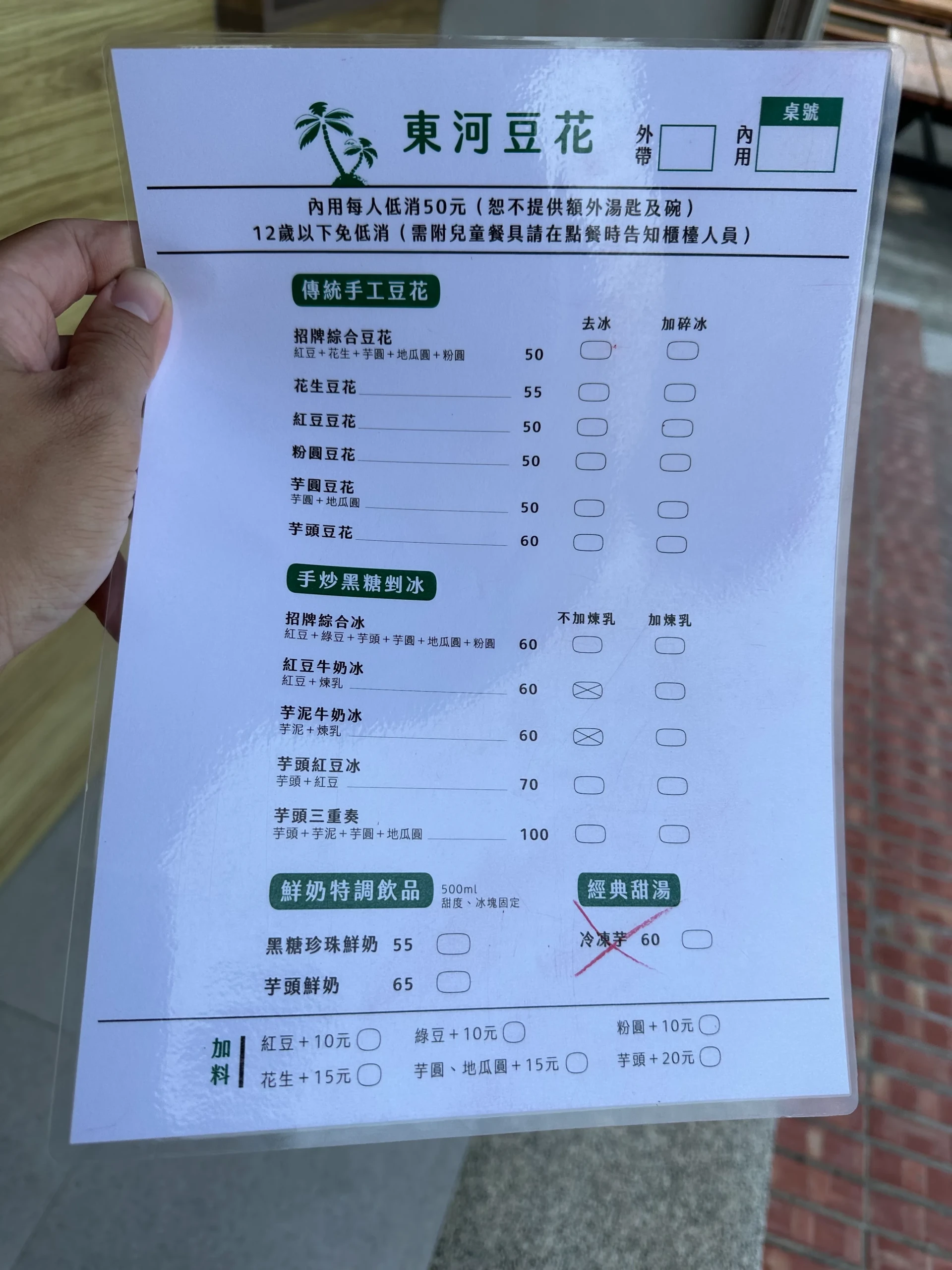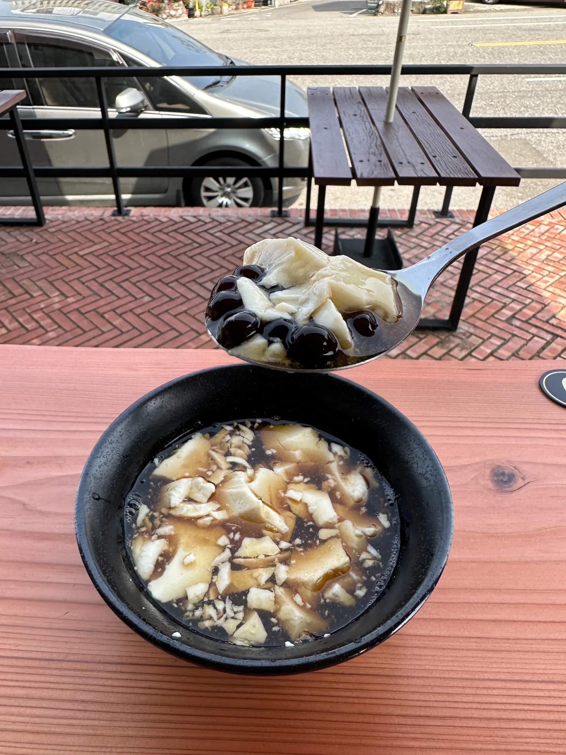 這間豆花店外觀灰色兩層樓建築佇立在路邊,不看到很難。豆花、冰店,非常特別。年輕人在櫃檯後的廚房工作,點了一碗芋頭豆花,去櫃檯付了帳,便四處周圍看看。挺棒的,擺明就是方便過路客的餐廳,有不算小的停車場,更規劃機車 和 汽車停車,路邊也不難停。廁所更是清潔,以路邊只是賣冰的規模來說,廁所真的別有匠心;廁所前更有一片草坪 和 造景,別緻的很,不就只是吃吃豆花、吃吃冰,搞得很像氣氛滿滿的咖啡廳,超棒的;不便宜的大片木製桌面,鏤空的四壁用矮矮的水泥區隔,可以隨意的跨過,卻是簡單的視線隔間,看得出用心。說說冰,芋頭有燉爛,芋頭塊心沒有白白的,紅豆很綿密,剉冰咬起來咖滋、咖滋的響,黑糖甜度也夠,可口之外,清潔度很好,處處可見到老闆的用心經營,給這家店一百分,而且會再來,幽靜,看海,怡然自得,很棒的感覺,不吵,環境清潔很好,世外桃源真的不過分。
