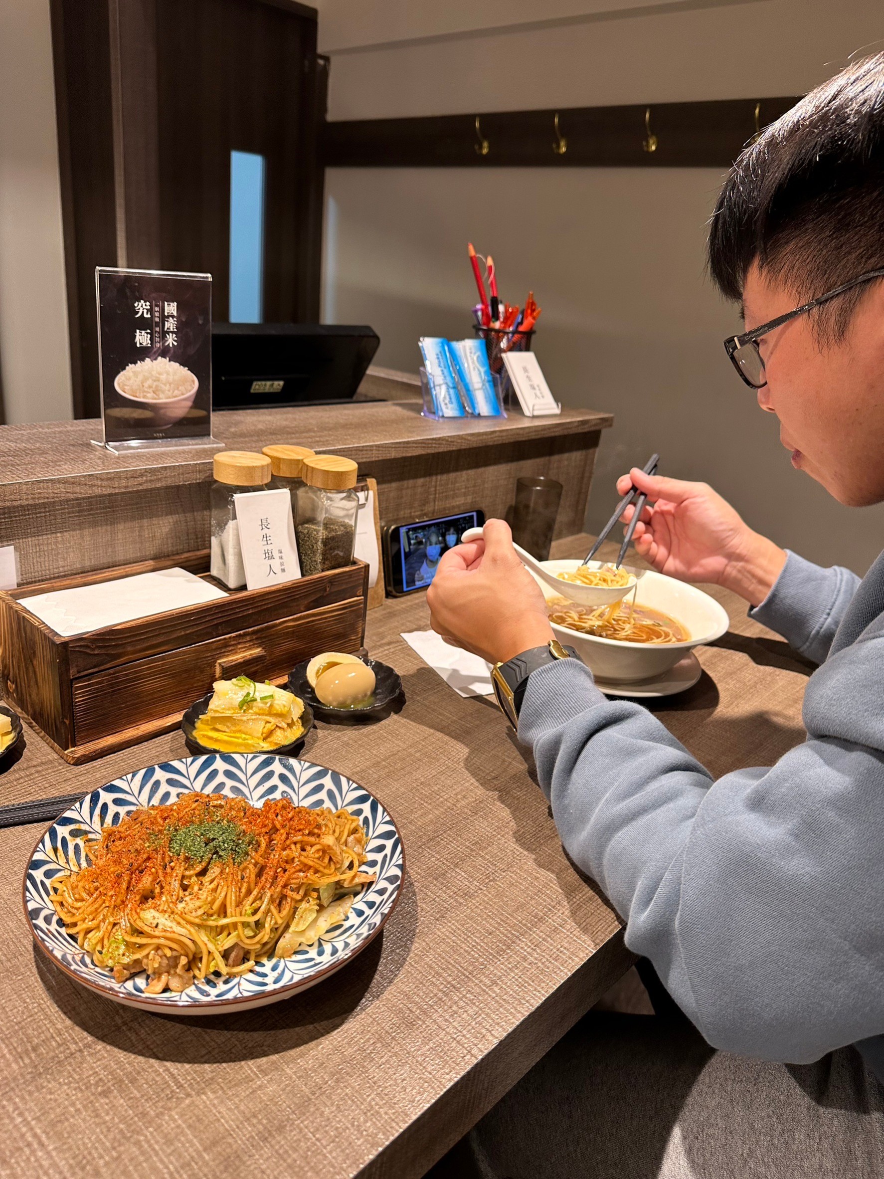 ⭐⭐⭐⭐⭐1. 到店不用詢問 直接先拿菜單 坐在外面椅子區等候就等於是排隊了 (當然也要人都到齊才可以排唷) 排隊順序方向從門口→至轉角↓ 店內用餐約10個位置而已 有位子釋出時店員就會主動出來詢問 2. 麵分兩種 喜歡吃硬麵口感的可以+15選立成 拉麵只有附肉 娃娃菜 海苔片 青蔥跟紫洋蔥 (有不吃的都可以在點餐時主動提出) 溏心蛋則是需要另外點的 選擇加麵的話 記得湯不要一次喝完 因爲廚師會分兩次給你麵(可能碗裝不下吧) 3. 覺得整體都很不錯阿 這次來用餐 店裡就一個廚師一個店員 店員要帶位 點餐 準備小菜 收銀 整理位子 離開前還會親切地詢問口味如何 服務上我覺得是很周到了 口味上喜歡清淡的可以點鹽味拉麵 湯頭非常順口 重鹹的可以點醬油拉麵 也是很香 比較可惜是沒吃到炒麵 炒麵是每日限定賣完就沒有了 下次有機會會想再來試試~