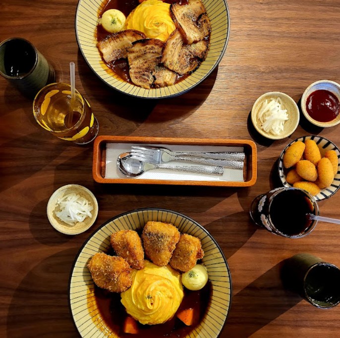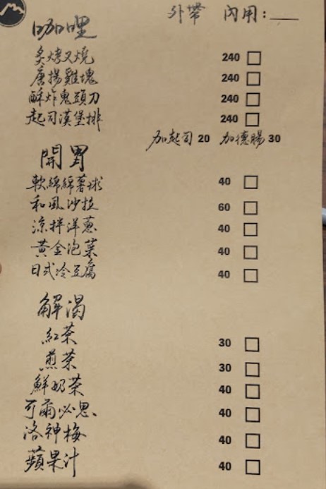 ⭐⭐⭐⭐⭐和朋友很好的回憶,互相分享的關係,我除了漢堡排我每種肉都吃到了,鬼頭刀很特別且酥軟魚香四溢。唐揚雞的麵皮又更脆一些,味道中規中矩外肉質多汁有咬勁。我還是最喜歡自己點的叉燒,第一次吃到這個搭配,上桌的時候炙燒之香撲鼻而來,每一片都大的令我驚訝,咬起來肉香而不過油,很夠味!隨咖哩有附醃製白蘿蔔絲,本意應該是解膩,但個人覺得章效不佳,有點不搭,建議點杯飲料來中和味蕾。咖哩份量對我來說很大,我當天沒吃早餐才一個人吃得完,十分滿足,下次希望能再訪品嚐咖哩搭配漢堡排。