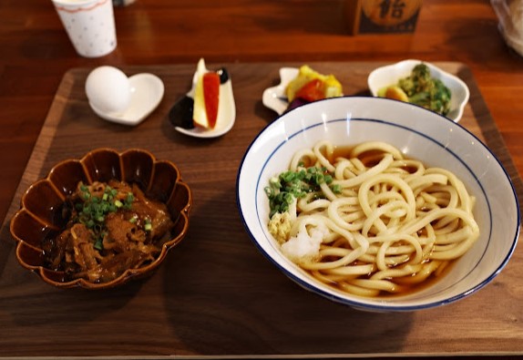 ⭐⭐⭐⭐⭐今天遇到每月一次的烏龍麵日。手桿烏龍麵(有豬牛兩種口味:豬肉是叉燒肉片;牛肉則有壽喜燒的口味),麵非常好吃,很有彈性,湯頭濃濃材魚香,配上薑泥與蘿蔔泥,清爽適合夏日。搭配小菜有櫛瓜、馬鈴薯肉豆、溫泉蛋、水果火龍果。