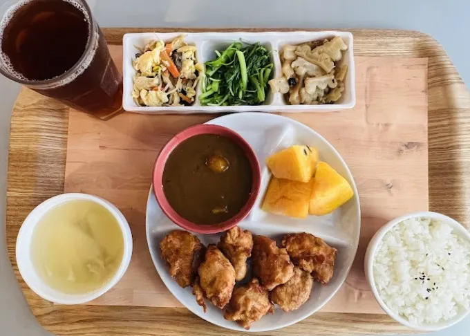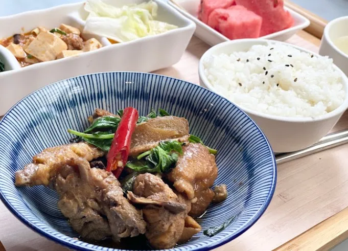 精緻套餐配菜新鮮、還附贈水果飲料, 皮蛋瘦肉粥很大碗, 鍋燒烏龍麵,麵條偏軟,湯頭好, 推薦炸豆腐,它的沾醬是靈魂(醬是蒜蓉),一定要沾才好吃,是阿俊老闆去會喜歡點的一道菜。 麻油雞套餐,若是沒有要去吃特色小吃,只想好好吃個飯,這邊是不錯的選擇,種類多樣化,不會不知道要挑選什麼。 整體環境舒適,人多也不擁擠,店面一二樓位置很多。