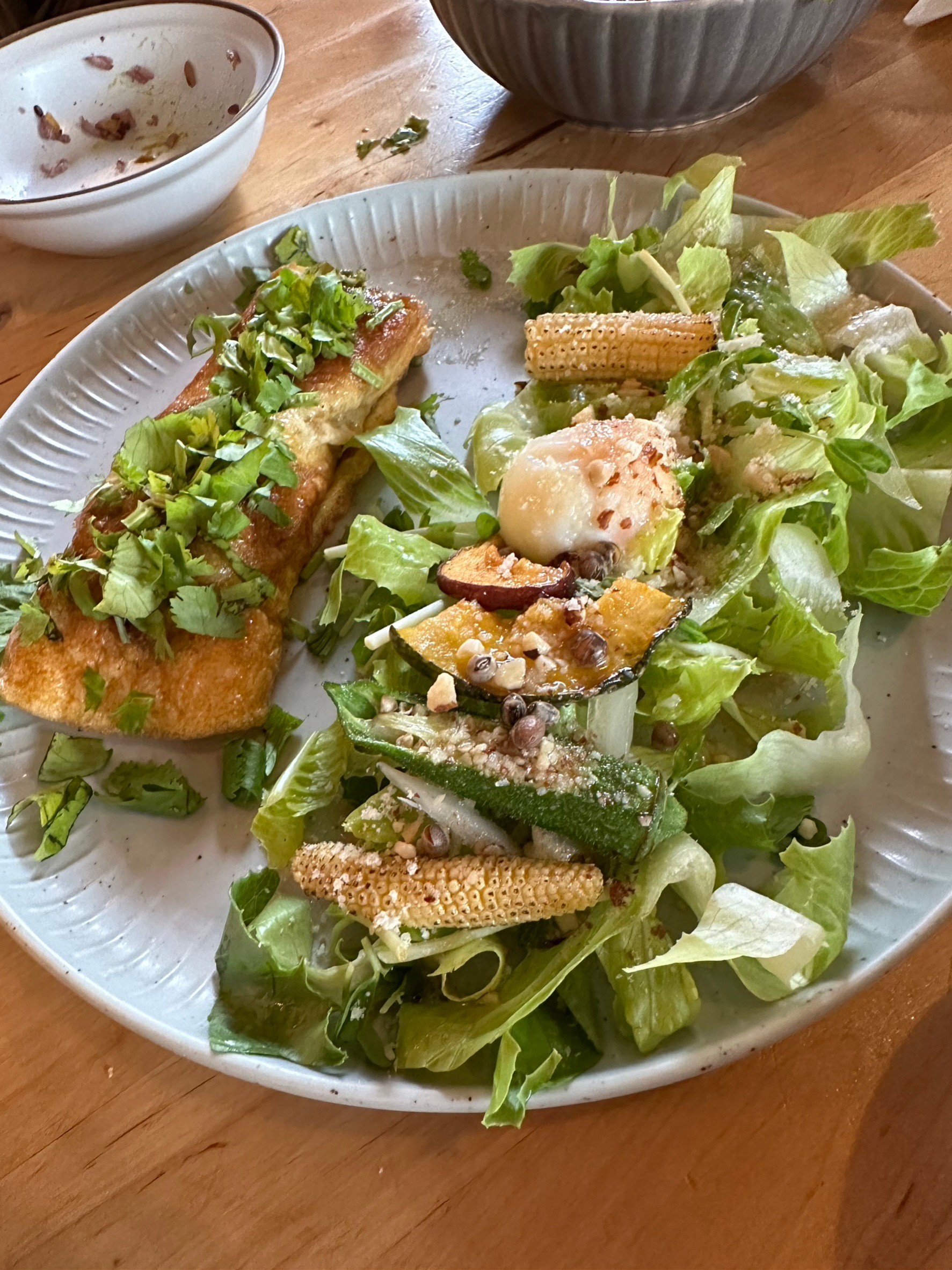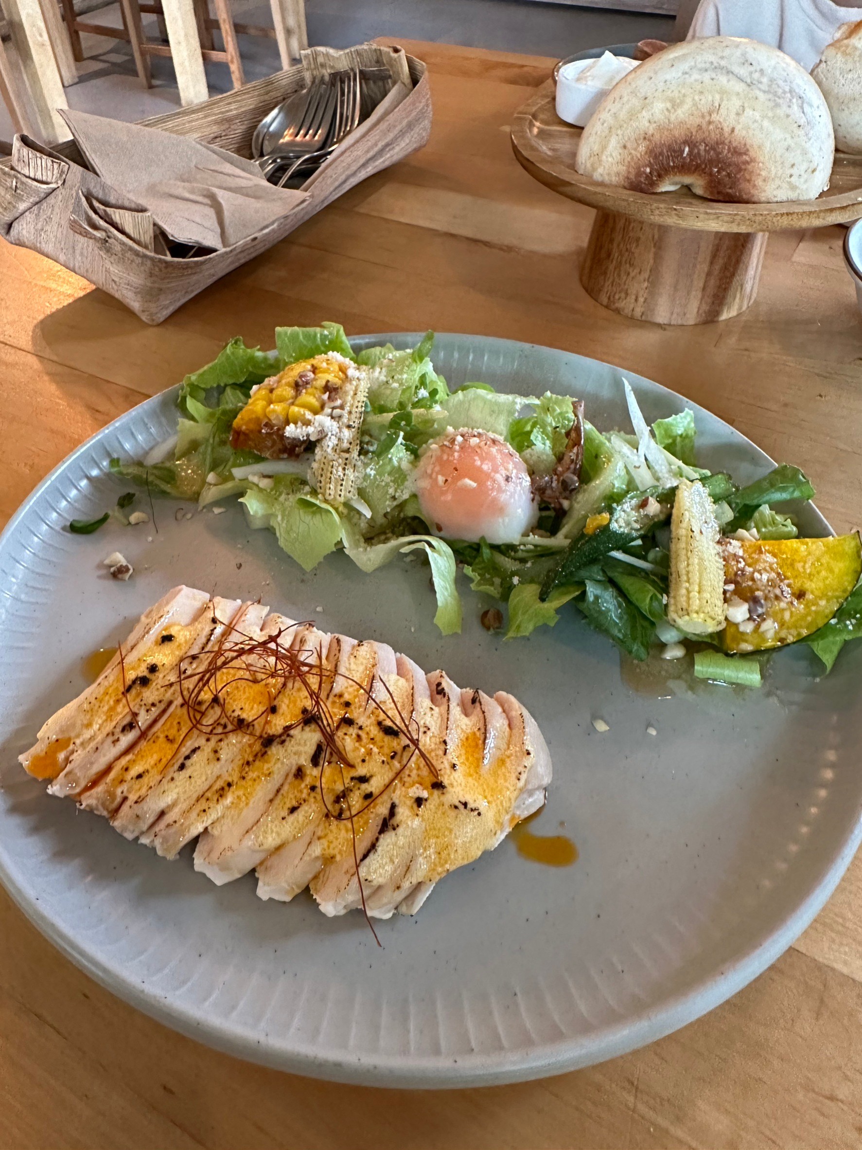 餐前麵包、貝果好吃,點的是印度咖哩,店員說微辣,但吃起來是非常溫和的口味也蠻好吃的,松露薯條也不錯,拿鐵好喝又大杯,餐後甜點很豐富的口感,整體是舒服好吃的店👍