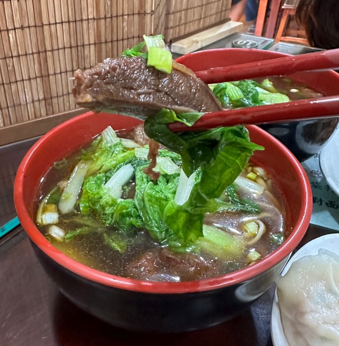 ⭐⭐⭐⭐⭐沒想到刷到這家 開車進來的時候嚇了一跳 小小的店面卻有超大的停車場跟等候區 有專人發放號碼牌避免插隊 牛肉麵是紅燒口味 麵條軟硬適中很好吃 湯頭較清淡但也比較爽口 牛肉大塊且軟嫩 配菜用料很多 龍鬚菜以及小菜都好吃 整體來說CP值不賴 而且吃完後循著馬路走到底是沙灘!