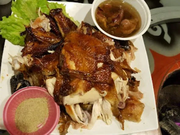 阿俊老闆很常請遠方而來的朋友招待來這邊用餐。阿俊老闆會點的菜色:烤雞、鹹魚拌飯、炒山蘇、鹽酥溪蝦、羊奶樹頭排骨湯、石板烤肉;烤雞會另外給一碗雞汁,這是重點可以拌在飯裡面,讓人忍不住一口接一口,真是太好吃了。