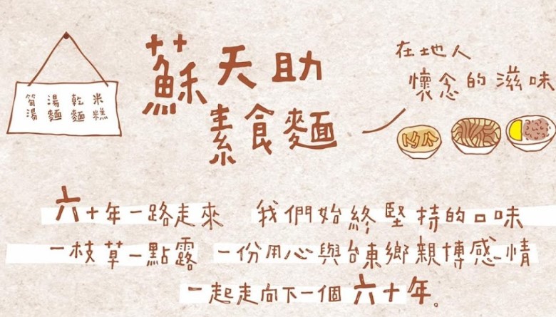 ⭐⭐⭐⭐⭐平常對於素食麵店不是很感興趣 因為多半走進店內都會聞到一股「素」味 但 走進蘇天助,完全不會覺得是全素的店家 來台東旅遊,被其他當地小店老闆推薦一定要來吃上一碗素食乾麵才算是真正來過台東,究竟一碗乾麵在台東人心目中的地位有多崇高呢~ 4/26下午16:40 到店裡點了一碗乾麵和一份油豆腐(有兩塊),店內客人幾乎是點這樣一個set ,店裡的人來來去去,絡繹不絕,但老闆動作很快,絕對不會讓你等太久,地板也有別於一般的小吃店,相當乾淨,不會油油滑滑的,有些小吃店的地板會跟溜冰場一樣😂 小碗的份量對於一個女生吃來說,很剛好!麵不會煮得過爛,素肉燥吃得到香菇和麵筋,肉燥的湯汁很多,卻不膩口,會一口接一口停不下來的吃~油豆腐非常入味,真的不輸外面麵店的油豆腐,是我吃過最好吃的油豆腐⋯真的很喜歡 當天晚上因為找不到其他宵夜店(撇除滷味跟炸物),晚上22:30又到了店裡點了一碗乾麵$45+一顆丸子$10+油豆腐$10 晚上煮麵的人換成了一位年輕人,是傳承第四代的後代,這家店已經在台東開超過一甲子了,希望貴店可以繼續經營下去,讓這樣的美味讓更多人知道~ 下次去台東,一定會再造訪好幾次的😋 如果你沒有吃過好吃的素食乾麵,建議一定要來試試看!!絕對不會後悔! p.s很多人都會加上辣醬,但因為本身不吃辣,就沒有嘗試了~ 💰支付方式:現金/無刷卡及開發票 ✌🏼推:油豆腐、乾麵、丸子